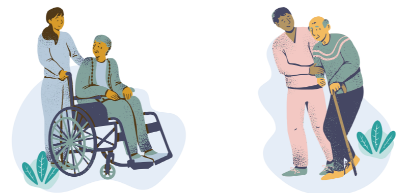 - 대상자의 신병을 돌보는 일 뿐만 아니라 대상자와 함께 자세를 유지하고 청소, 세탁, 조리 등의 생활지원이나 배설, 입욕, 식사등의 신체보조 혹은 일상생활 중 어려움 등에 대해서도 구체적인 조언