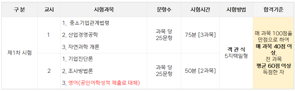 ※ 1차 시험 면제대상