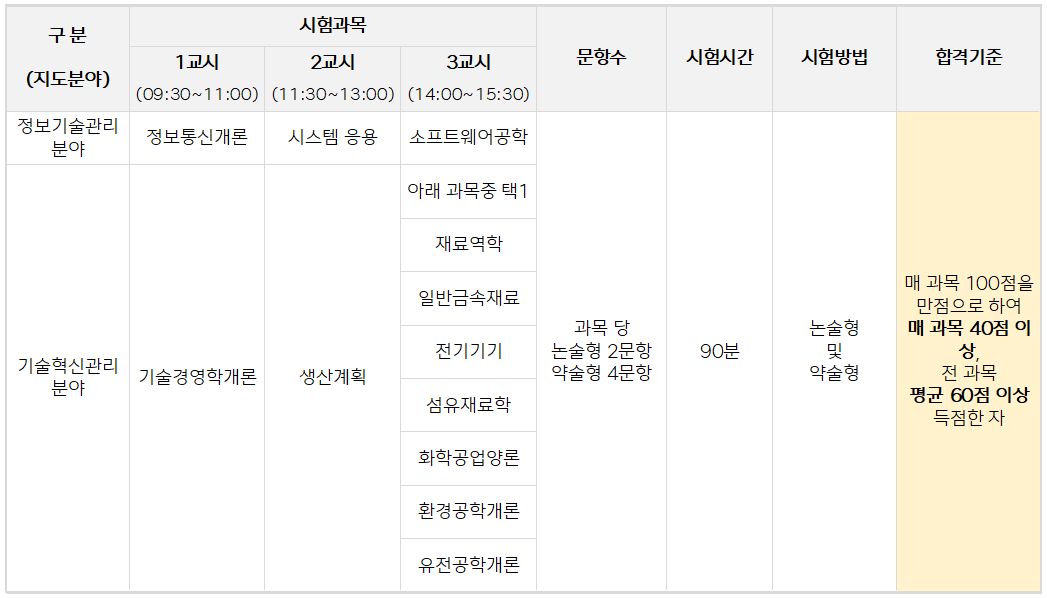 ▶ 시험과목 및 합격기준 확인